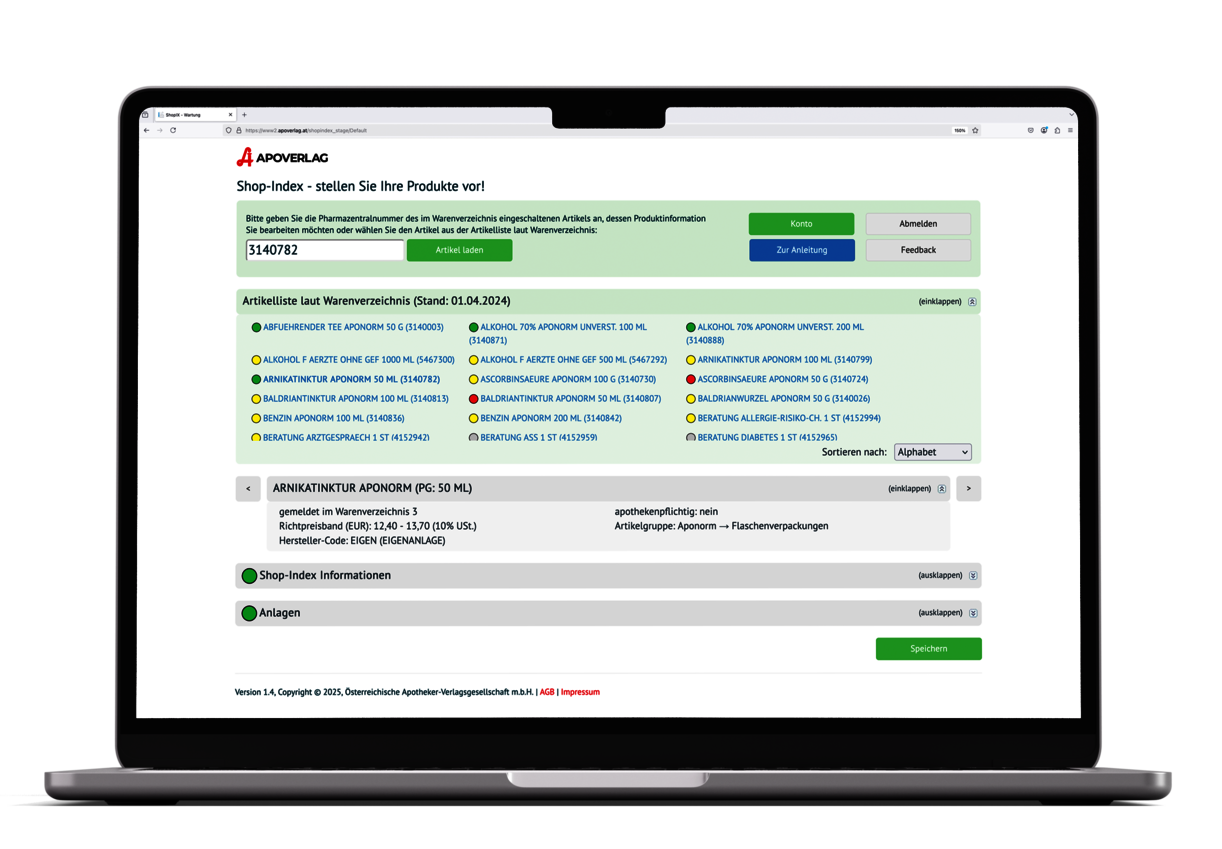 Der Shop-Index ist eine zentrale Datenbank, die Apotheken unterstützt, ihre digitalen Kanäle – vom Webshop bis zu POS-Lösungen – mit vollständigen, aktuellen und geprüften Produktinformationen zu versorgen. Die Daten stammen direkt von den Herstellern oder Datenvertragspartnern. Kurz gesagt: Er ist die Grundlage für modernen Apothekenservice im digitalen Zeitalter.